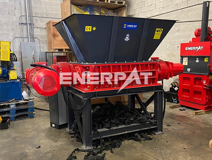 在跟客户沟通后,了解到客户需要对废橡胶进行前期的破碎,减少物料体积,为后续磨粉工序做准备。在这种需求下,破碎的尺寸要越小越利于后道工序。因此我们在设备选择上,推荐了出料尺寸较小的单轴撕碎机。该类型的撕碎机可以根据需求定制筛网孔尺寸,出料尺寸可控制在10mm大小,能满足客户对破碎尺寸的要求。大功率设计也能满足客户每天处理50t的需求。设备的性能和质量都让客户很满意!