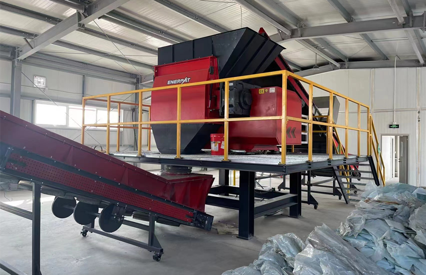 与客户多次沟通后,针对客户需要对废塑料进行前期破碎,同时为后续产线工序做准备的需求,以及结合客户的技术文件和设计院要求,我们向客户推荐了大功率单轴破碎机。