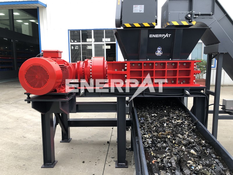 恩派特双轴破碎机在处理废弃机油滤芯方面有着独特的方法和显著优势。在处理过程中,废弃机油滤芯首先通过上料输送机被送入双轴破碎机。双轴破碎机凭借其强大的破碎能力,将机油滤芯破碎成长条状物料。这一过程中,破碎机的合金钢刀具发挥着关键作用,其高强度和耐磨性确保了设备能够高效、稳定地运行,即使是韧性、延展性强的废料也能轻松处理。