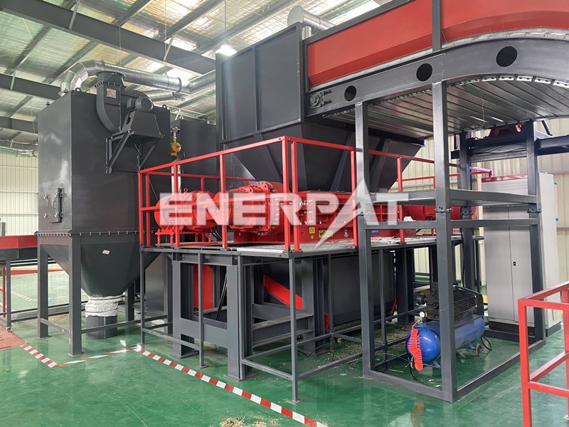 2. 破碎阶段:采用双轴剪切式破碎,通过两个相对旋转的刀轴将锂电池撕碎成小块。