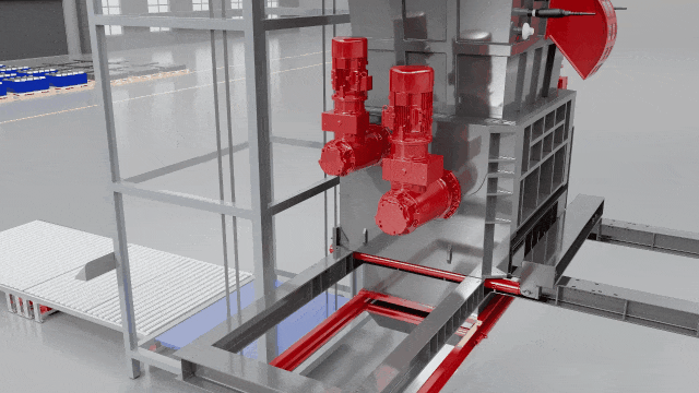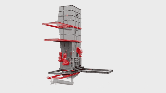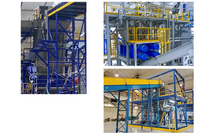运行方式:提升系统将锂电池提升并送入密封缓存仓,仓内随即被注入氮气以降低氧气浓度,当氧含量<5%时阀门打开,物料落入被氮气保护的密闭破碎系统中破碎成30mm尺寸(尺寸可调),通过下料斗排出,再由绞龙输送机输送至下道工序。