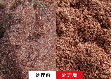 在铜的切削、打磨、钻孔等加工环节中,会产生大量的铜屑,约占金属原料的20%,这些铜屑不仅会占用大量空间,还会对环境造成危害。铜屑中的铜元素是宝贵的金属资源,具有 很大的回收价值,团状或长料状铜屑粉碎后,将其冷压成饼块,可以重新熔炉实现资源再利用,或进行售卖提高企业经济效益。