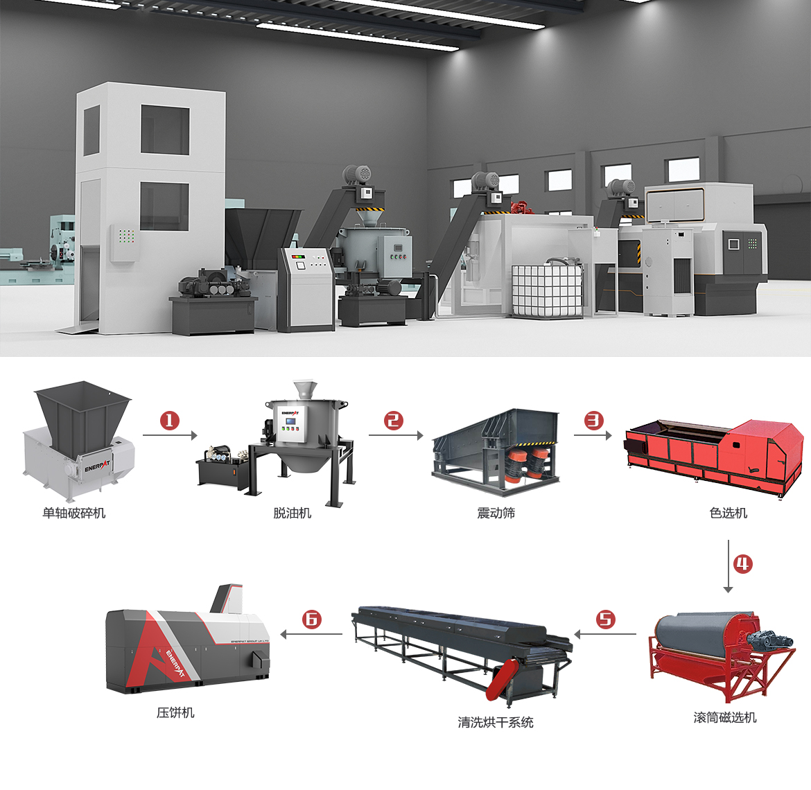 2、多重处理工艺,稳定产出高品质镍合金屑 首先通过色选、磁选等分选技术,能够精准分离镍合金屑、塑料、铁等不同材质。再经高压喷淋、超声波清洗等5道清洗工序,将含油液的镍合金屑清洗干净。