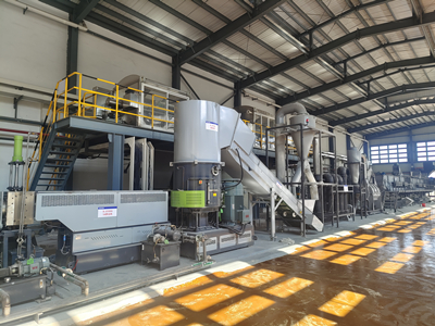 3、多重工序设计,产出高品质塑料颗粒采用粗破+细破两道破碎工序,确保物料出料尺寸可控,配合两道清洗工序,使物料清洁度达95%以上,最后通过机械式挤压脱水,将物料含水量严格控制在5%以内。