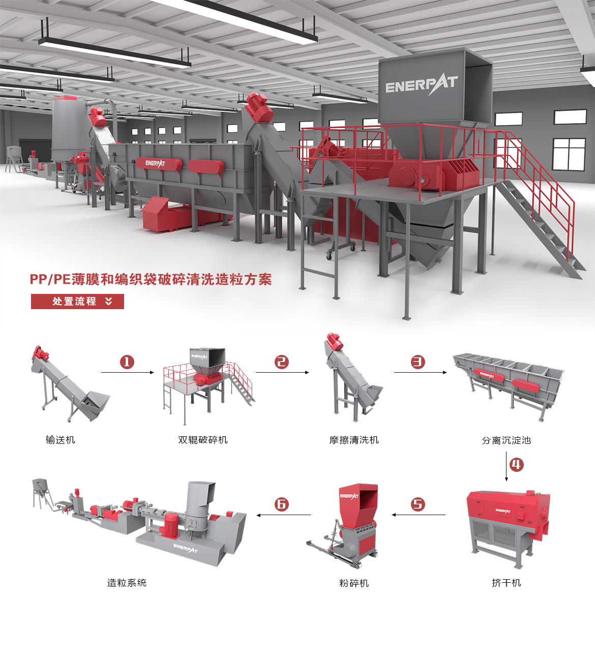简介:恩派特PP/PE薄膜和编织袋破碎清洗造粒方案集软硬件于一体,采用模块化设计,生产线涵盖:输送机、破碎机、摩擦清洗机、分离沉淀池、挤干机、造粒机等。