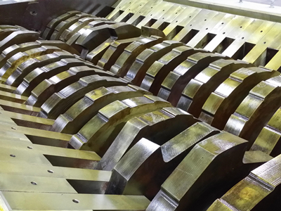 破碎系统单轴破碎机用于易拉罐废料细破碎处理,将物料破碎成较小颗粒,具有处理产量大、破碎效率高、运行稳定、能耗低等特点。